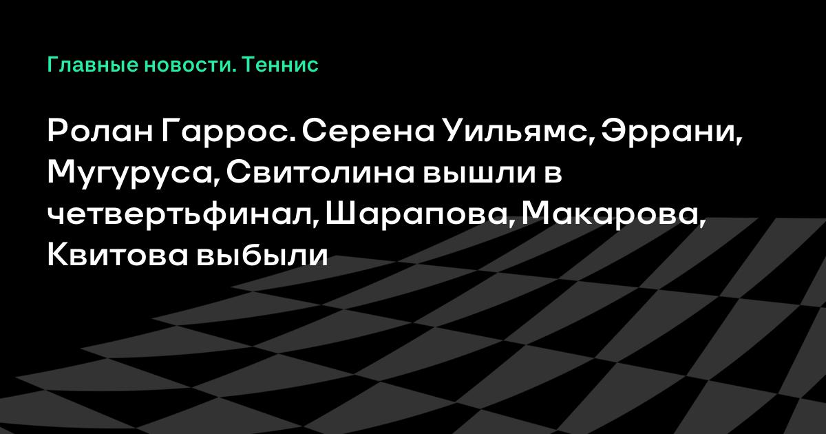 Ролан Гаррос. Серена Уильямс, Эррани, Мугуруса, Свитолина вышли в четвертьфинал, Шарапова, Макарова, Квитова выбыли