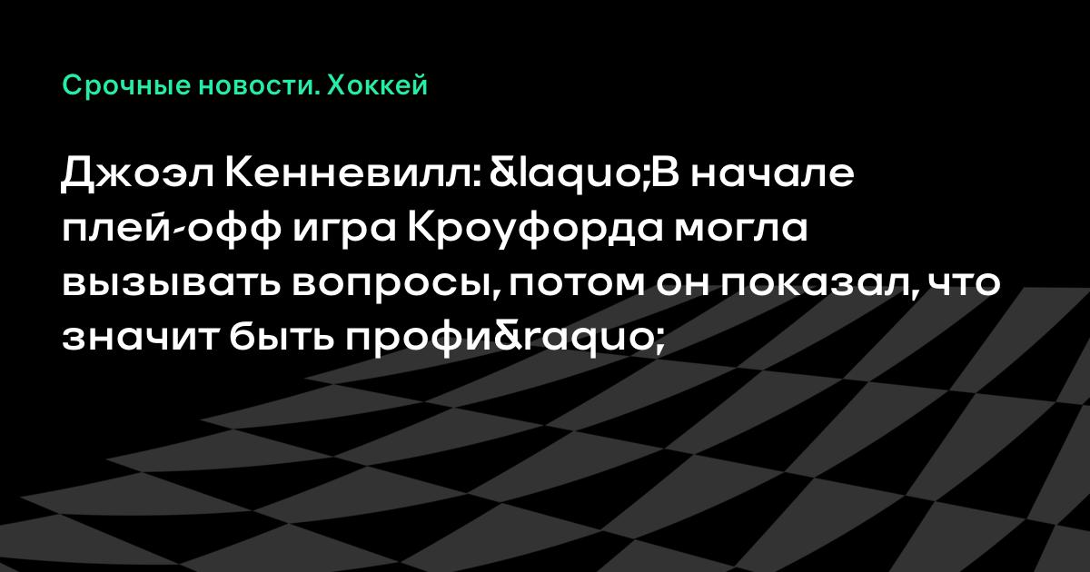 Джоэл Кенневилл: «В начале плей-офф игра Кроуфорда могла вызывать вопросы, потом он показал, что значит быть профи»
