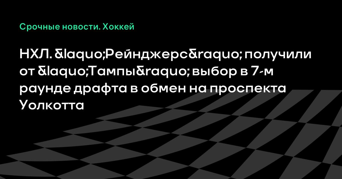 НХЛ. «Рейнджерс» получили от «Тампы» выбор в 7-м раунде драфта в обмен на проспекта Уолкотта