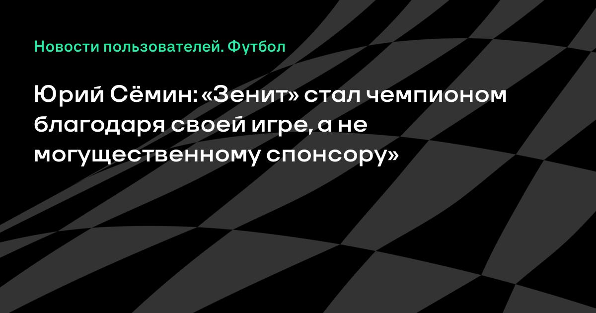 Юрий Сёмин: «Зенит» стал чемпионом благодаря своей игре, а не могущественному спонсору»