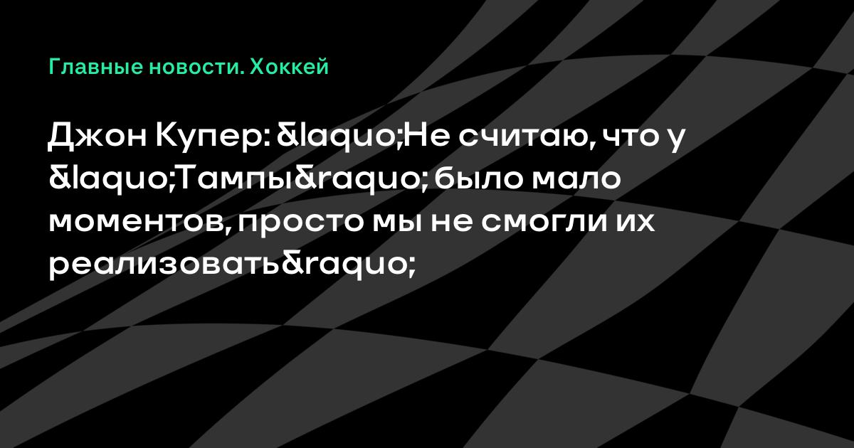 Главный тренер «Тампы» Джон Купер прокомментировал поражение от «Чикаго» (1:2) в первом матче финальной серии Кубка Стэнли.