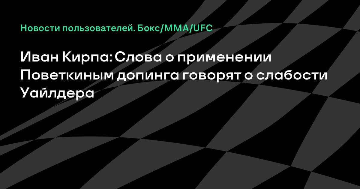Обвинения в применении допинга Александром Поветкиным свидетельствуют о слабости его соперника, чемпиона мира по версии WBC американца Деонтея Уайлдера, заявил агентству «Р-Спорт» тренер россиянина Иван Кирпа.