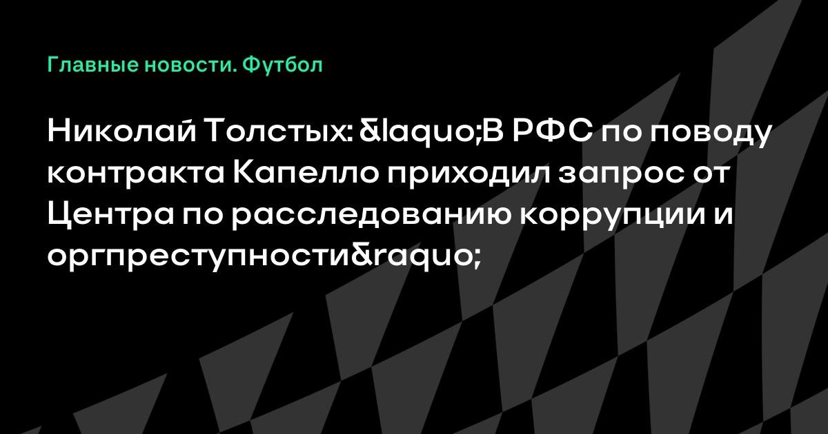 Николай Толстых: «В РФС по поводу контракта Капелло приходил запрос от Центра по расследованию коррупции и оргпреступности»