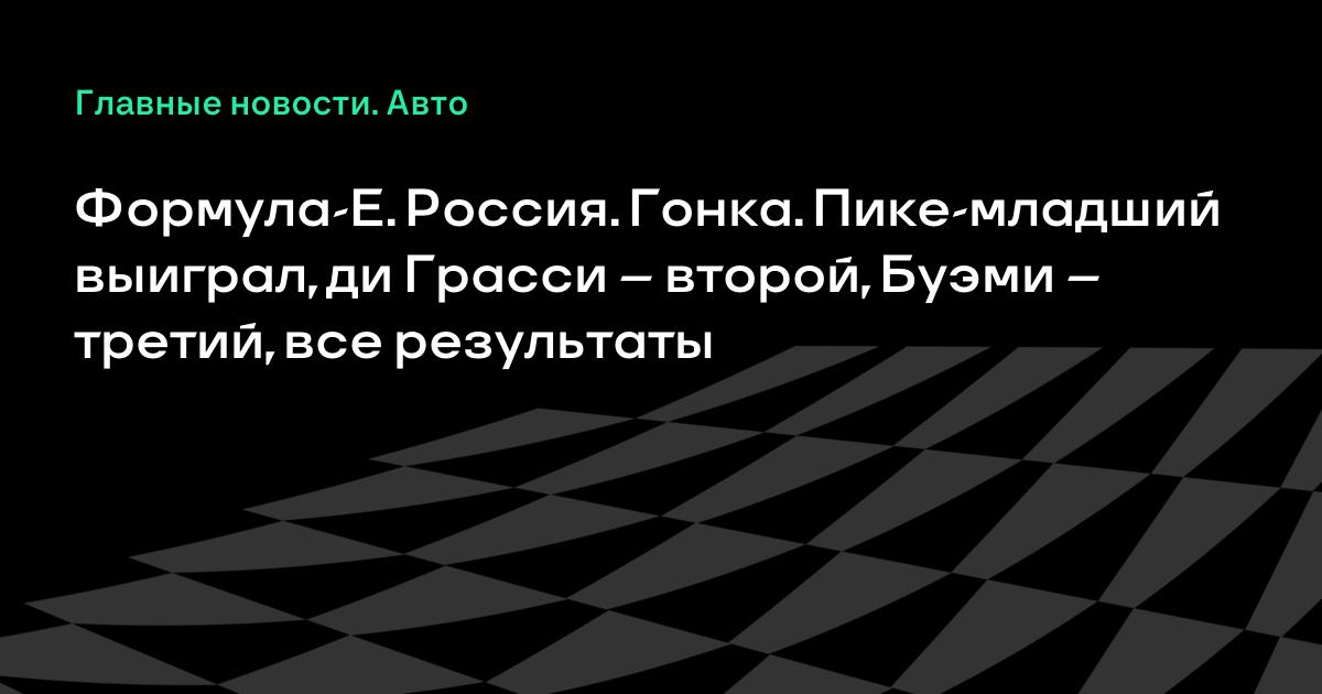 Формула-Е. Россия. Гонка. Пике-младший выиграл, ди Грасси – второй, Буэми – третий, все результаты