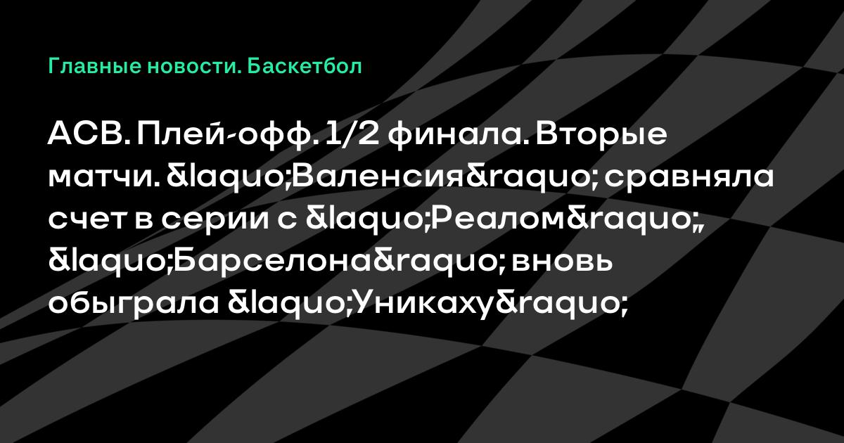 ACB. Плей-офф. 1/2 финала. Вторые матчи. «Валенсия» сравняла счет в серии с «Реалом», «Барселона» вновь обыграла «Уникаху»