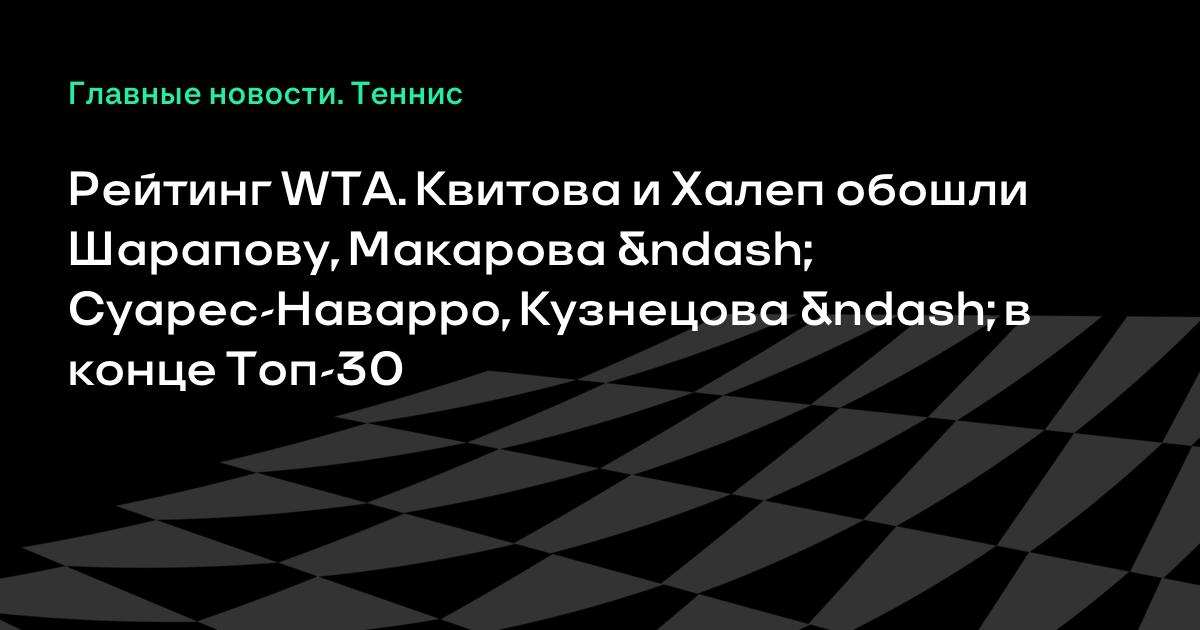 Рейтинг WTA. Квитова и Халеп обошли Шарапову, Макарова – Суарес-Наварро, Кузнецова – в конце Топ-30