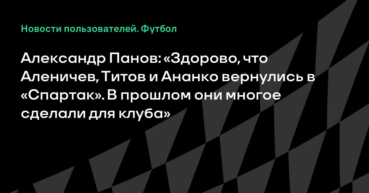 Александр Панов: «Здорово, что Аленичев, Титов и Ананко вернулись в «Спартак». В прошлом они многое сделали для клуба»