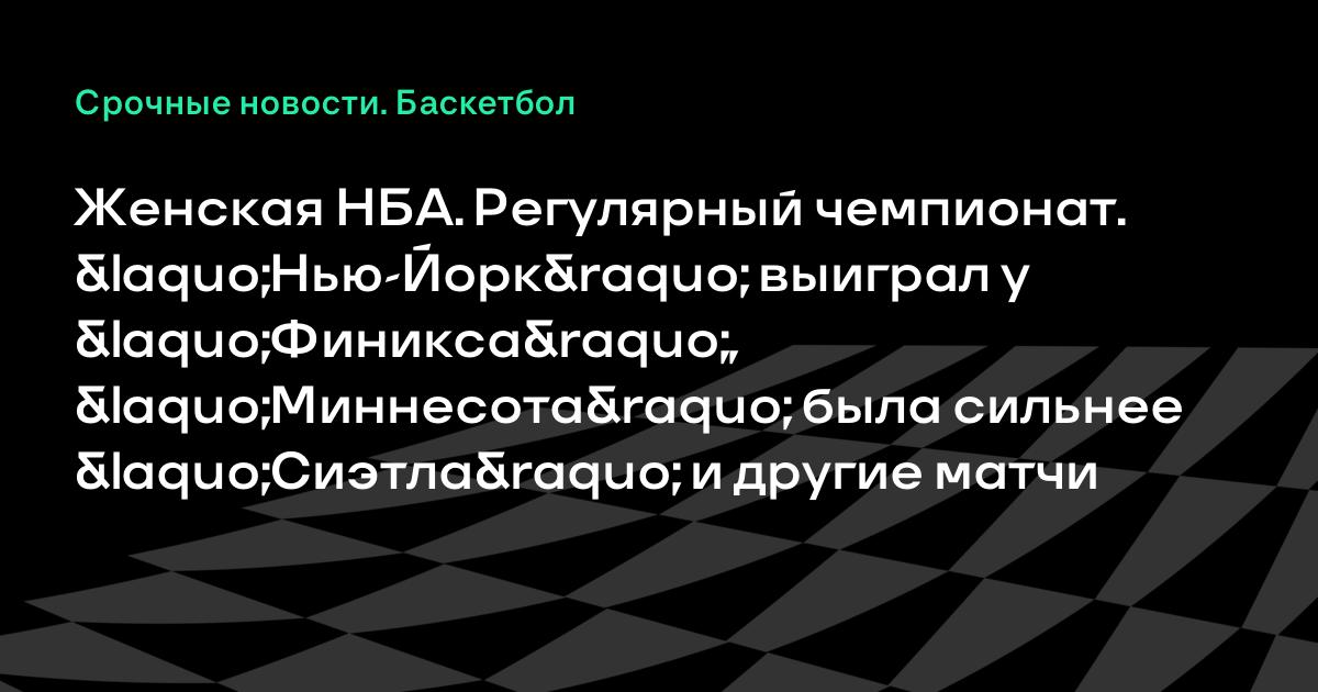 Женская НБА. Регулярный чемпионат. «Нью-Йорк» выиграл у «Финикса», «Миннесота» была сильнее «Сиэтла» и другие матчи