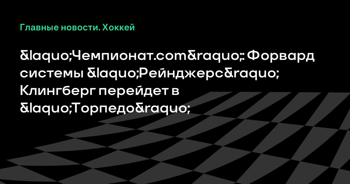 «Чемпионат.com»: Форвард системы «Рейнджерс» Клингберг перейдет в «Торпедо»
