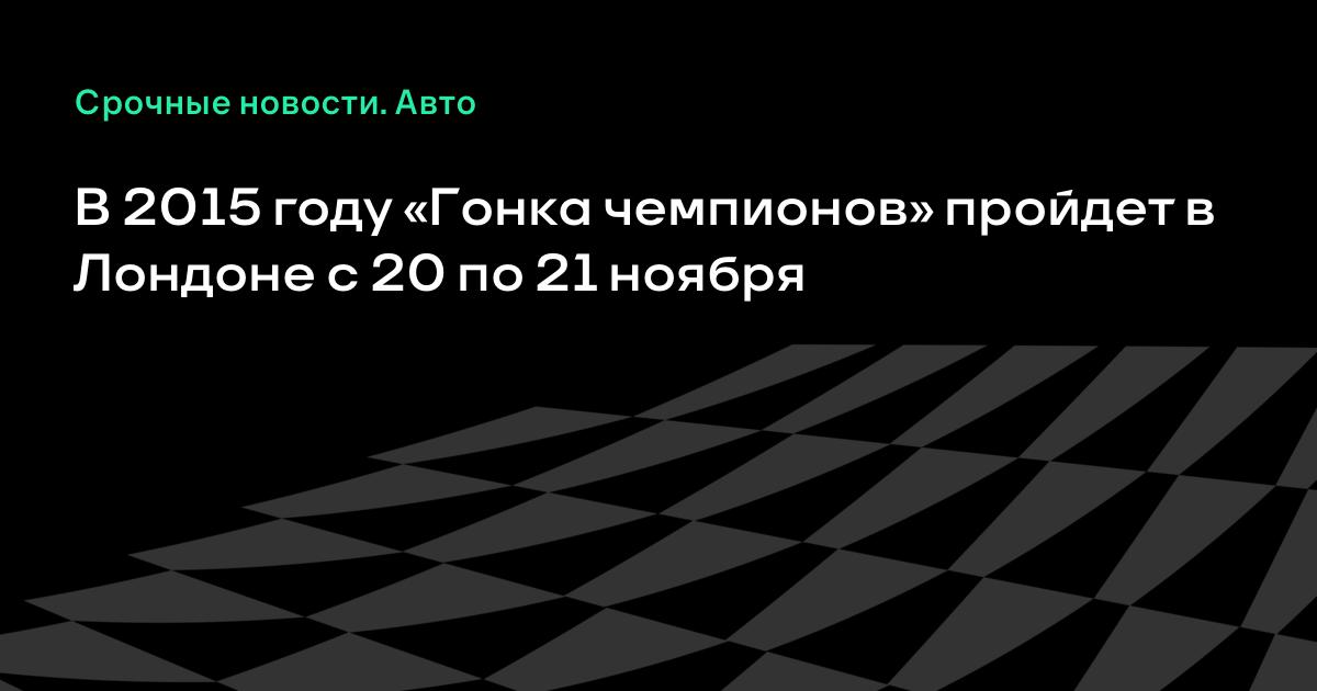 В 2015 году «Гонка чемпионов» пройдет в Лондоне с 20 по 21 ноября