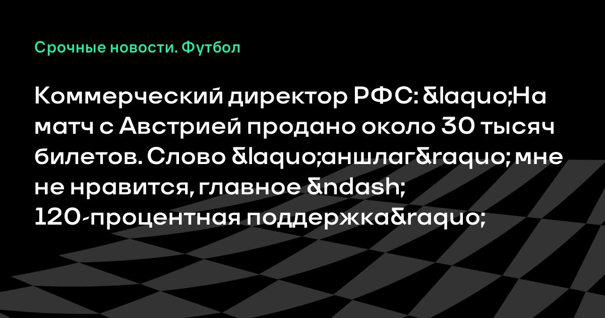 Коммерческий директор РФС: «На матч с Австрией продано около 30 тысяч билетов. Слово «аншлаг» мне не нравится, главное – 120-процентная поддержка»