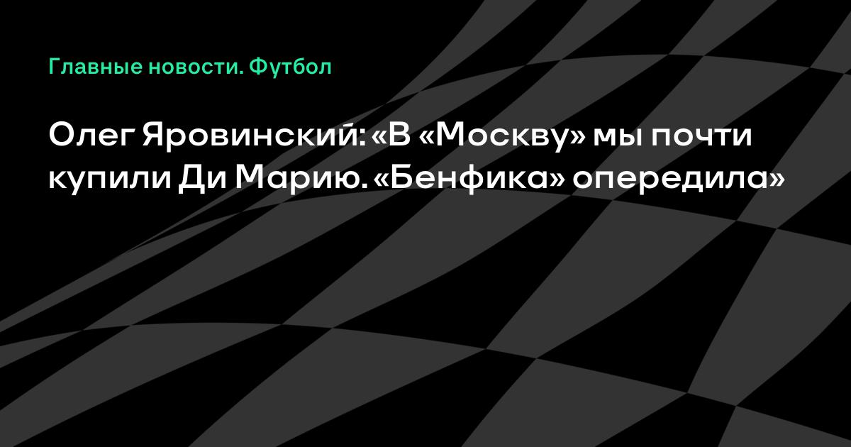 Олег Яровинский: «В «Москву» мы почти купили Ди Марию. «Бенфика» опередила»
