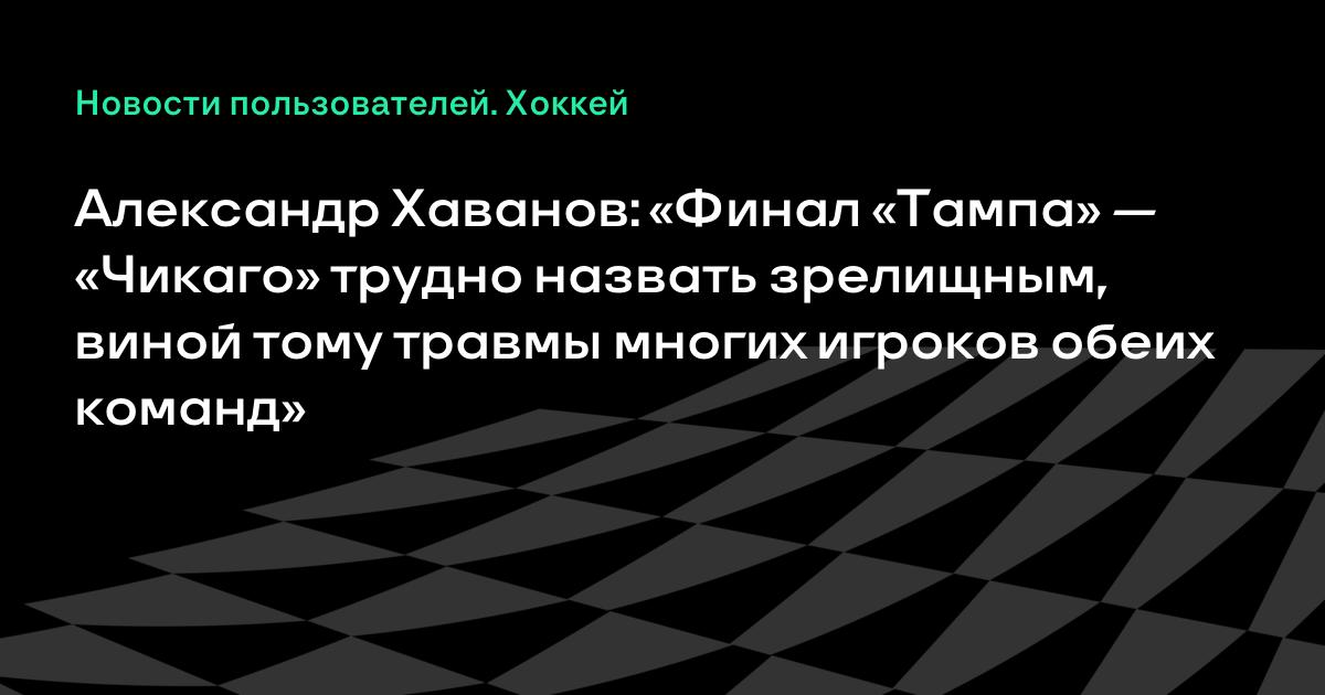 Александр Хаванов: «Финал «Тампа» — «Чикаго» трудно назвать зрелищным, виной тому травмы многих игроков обеих команд»