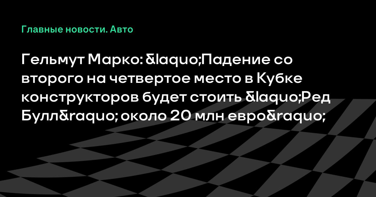 Гельмут Марко: «Падение со второго на четвертое место в Кубке конструкторов будет стоить «Ред Булл» около 20 млн евро»