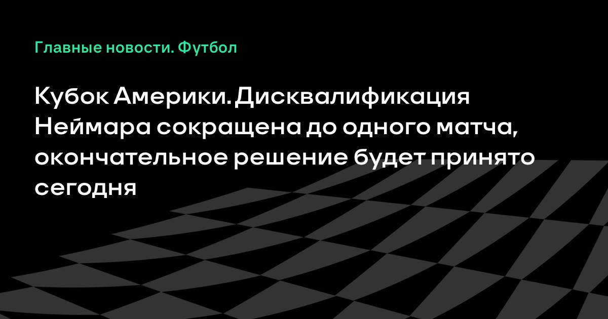 Кубок Америки. Дисквалификация Неймара сокращена до одного матча, окончательное решение будет принято сегодня
