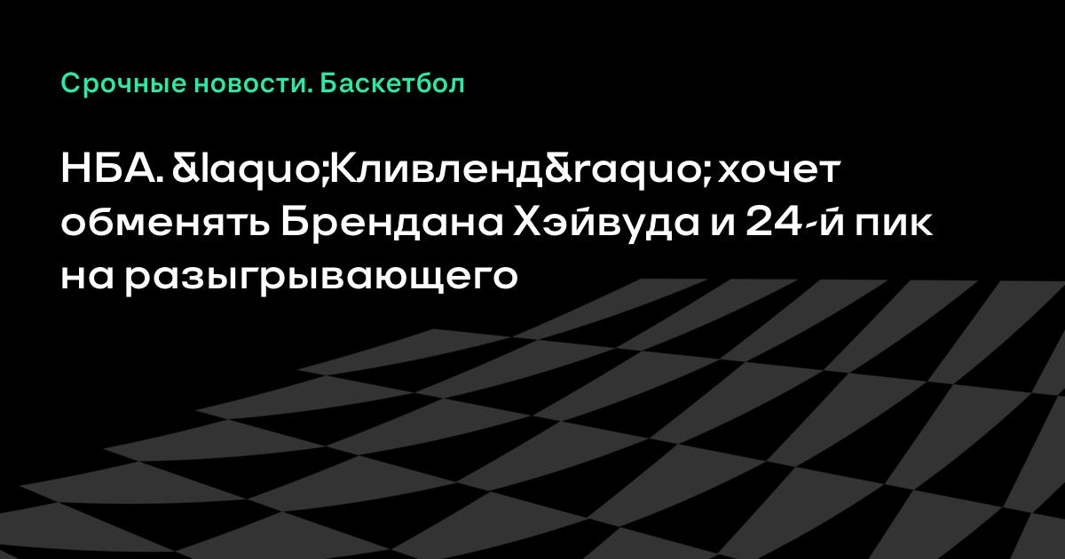 Как сообщает ESPN.com, руководство «Кливленда» готово обменять центрового Брендана Хэйвуда и 24-й выбор на предстоящем драфте с целью приобрести разыгрывающего защитника, который сможет подменять или играть вместе с Кайри Ирвингом.
