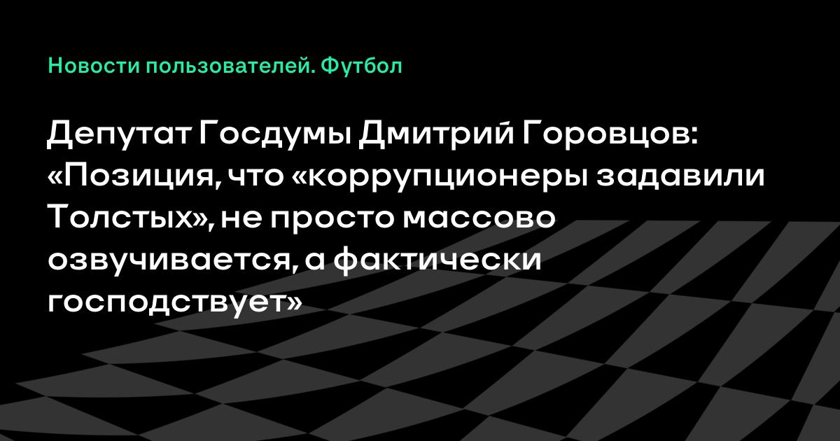 Депутат Госдумы Дмитрий Горовцов: «Позиция, что «коррупционеры задавили Толстых», не просто массово озвучивается, а фактически господствует»