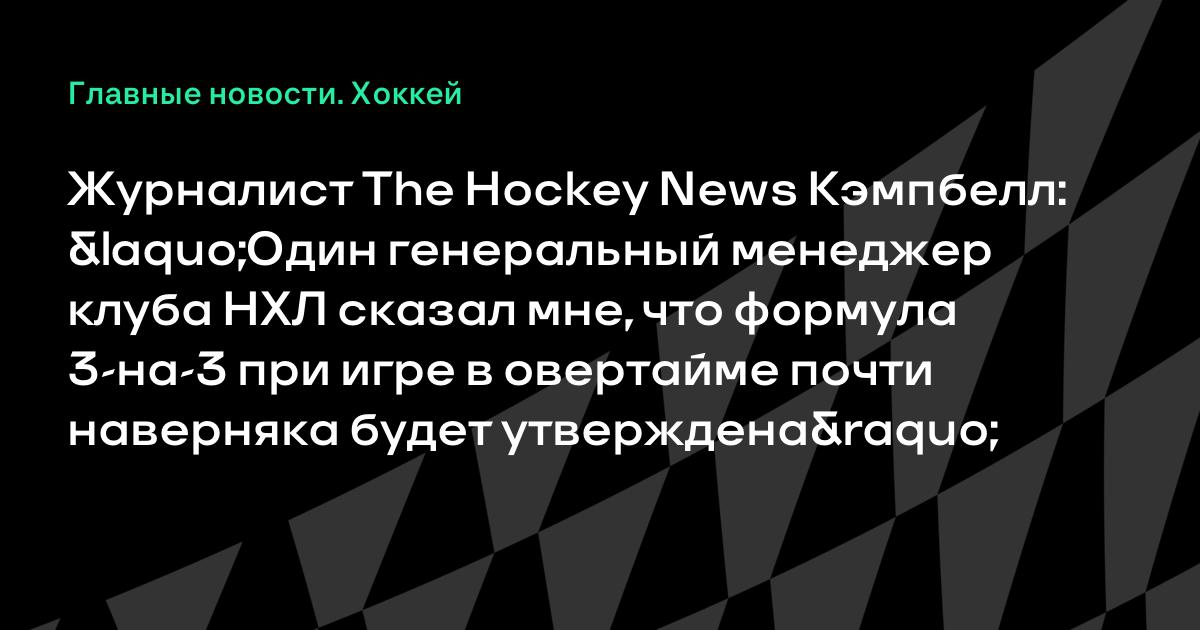 Журналист The Hockey News Кэмпбелл: «Один генеральный менеджер клуба НХЛ сказал мне, что формула 3-на-3 при игре в овертайме почти наверняка будет утверждена»