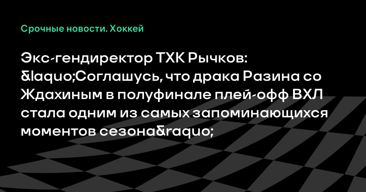 Экс-гендиректор ТХК Рычков: «Соглашусь, что драка Разина со Ждахиным в полуфинале плей-офф ВХЛ стала одним из самых запоминающихся моментов сезона»