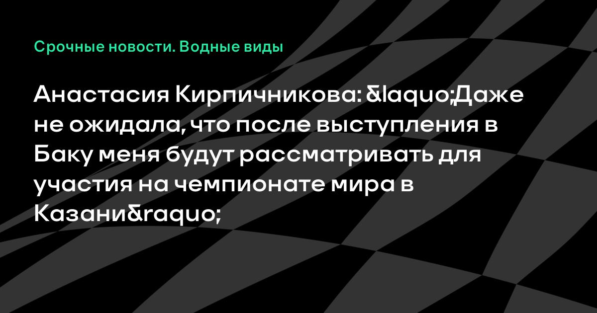 Даже не ожидала, что все так обернется, и по итогам моего выступления в Баку мою кандидатуру будут рассматривать для участия на чемпионате мира в Казани», – рассказала Кирпичникова.