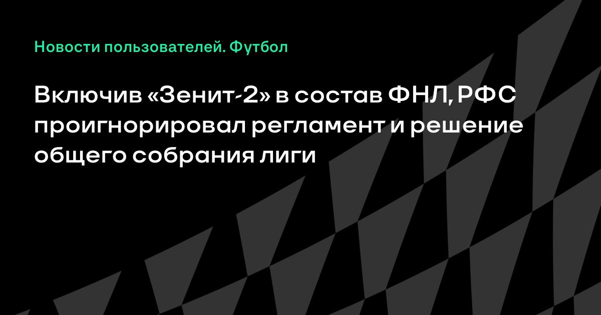 Включив «Зенит-2» в состав ФНЛ, РФС проигнорировал регламент и решение общего собрания лиги
