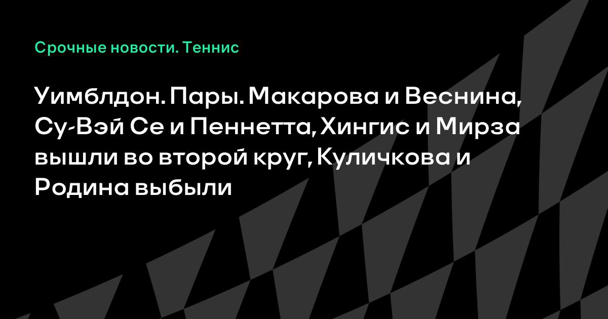 Уимблдон. Пары. Макарова и Веснина, Су-Вэй Се и Пеннетта, Хингис и Мирза вышли во второй круг, Куличкова и Родина выбыли