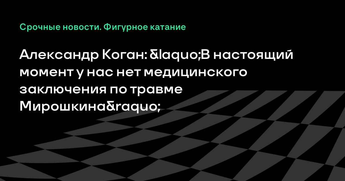 Генеральный директор Федерации фигурного катания России (ФФКР) Александр Коган прокомментировал информацию о травме российского фигуриста-парника Максима Мирошкина.