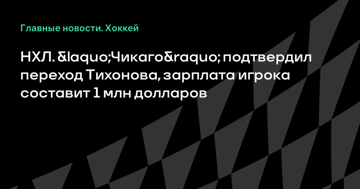 НХЛ. «Чикаго» подтвердил переход Тихонова, зарплата игрока составит 1 млн долларов