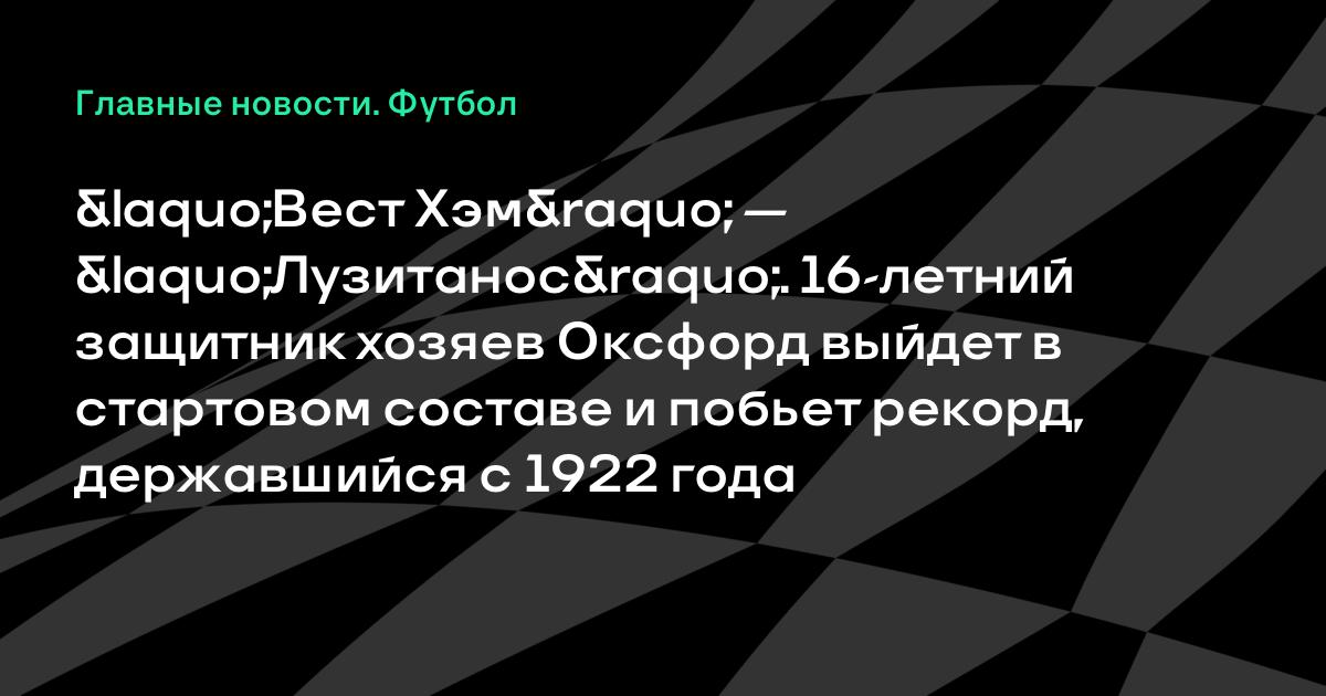 «Вест Хэм» — «Лузитанос». 16-летний защитник хозяев Оксфорд выйдет в стартовом составе и побьет рекорд, державшийся с 1922 года