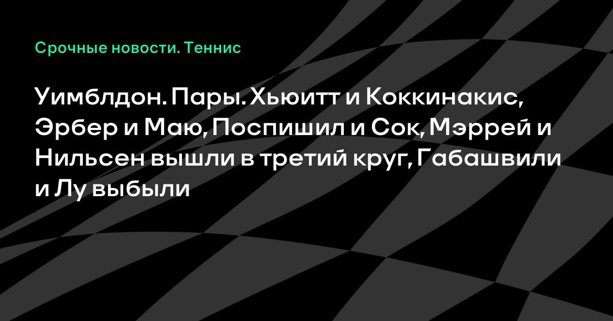 Уимблдон. Пары. Хьюитт и Коккинакис, Эрбер и Маю, Поспишил и Сок, Мэррей и Нильсен вышли в третий круг, Габашвили и Лу выбыли