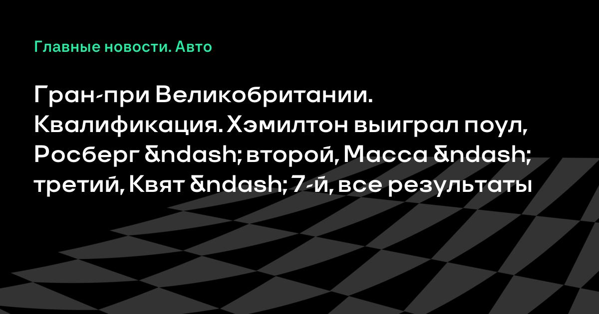 Гран-при Великобритании. Квалификация. Хэмилтон выиграл поул, Росберг – второй, Масса – третий, Квят – 7-й, все результаты