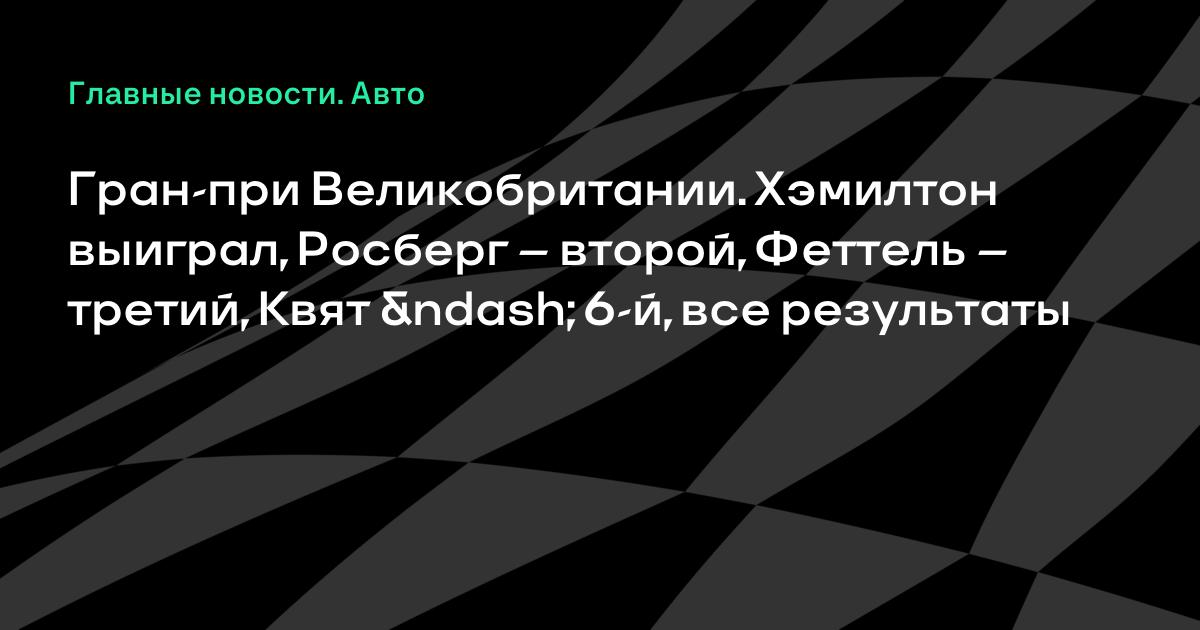 Гран-при Великобритании. Хэмилтон выиграл, Росберг – второй, Феттель – третий, Квят – 6-й, все результаты