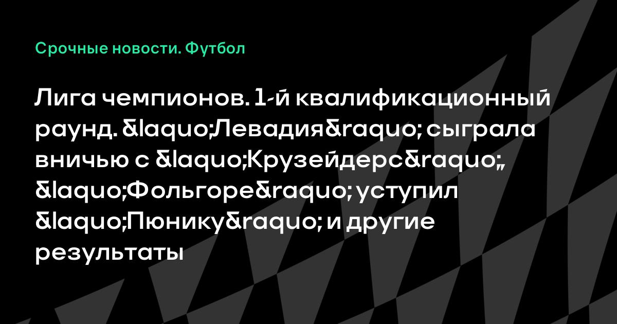 Лига чемпионов. 1-й квалификационный раунд. «Левадия» сыграла вничью с «Крузейдерс», «Фольгоре» уступил «Пюнику» и другие результаты