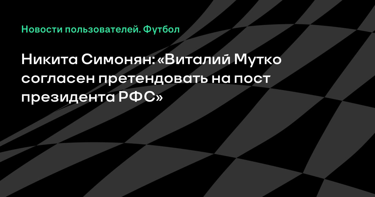 Никита Симонян: «Виталий Мутко согласен претендовать на пост президента РФС»