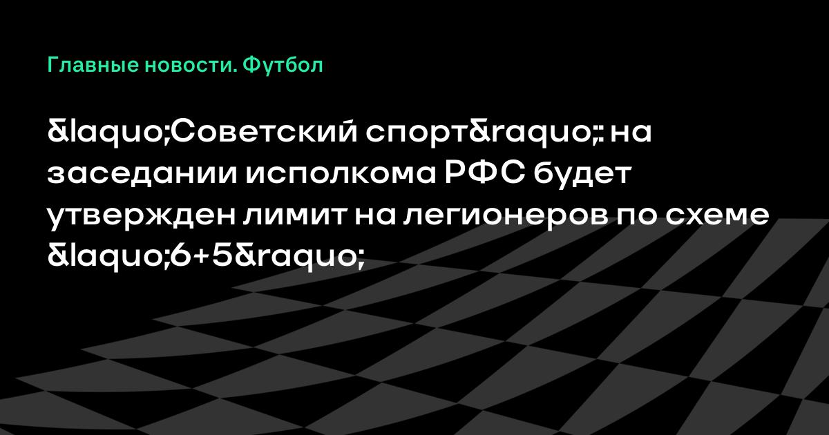 На заседании исполкома РФС по лимиту на легионеров будет утверждена схема «6+5», сообщает «Советский спорт».
