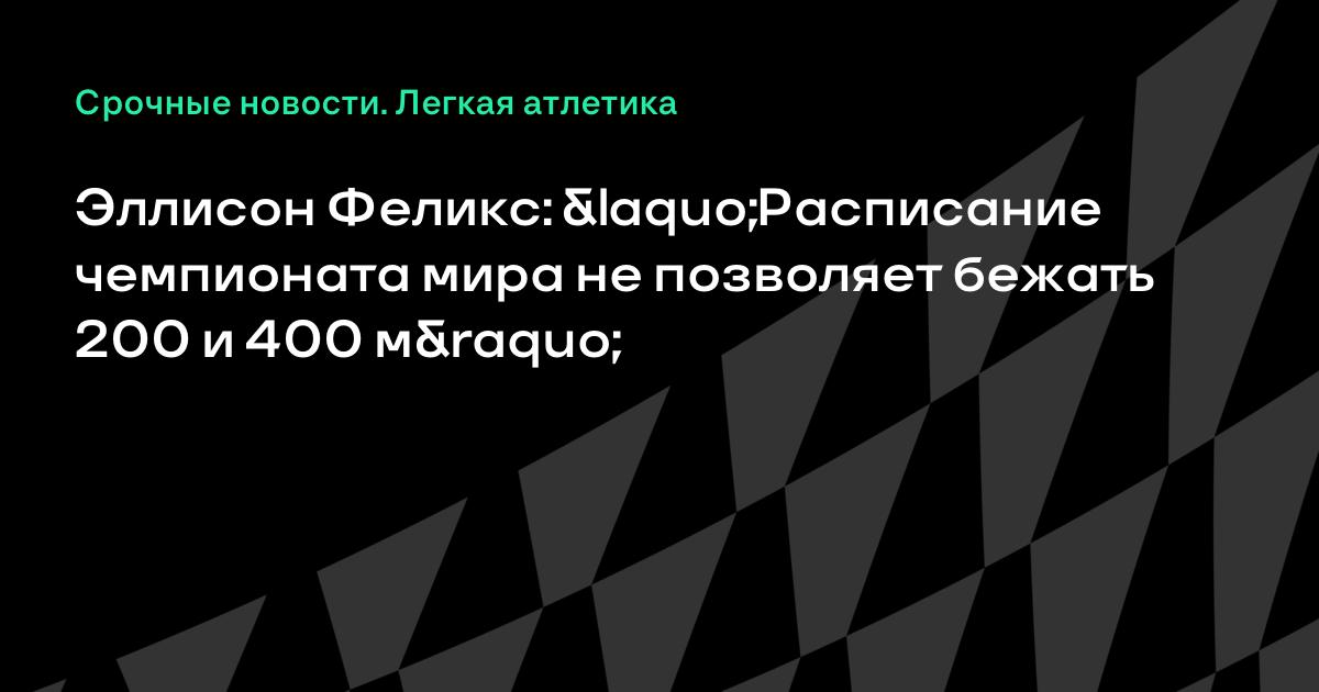 Для меня это разочарование, потому что многие другие спортсменки тоже хотели бы выступить на 200 и 400 м. Я думаю, что нам должны были дать возможность пробежать на двух дистанциях», – сказала Феликс.