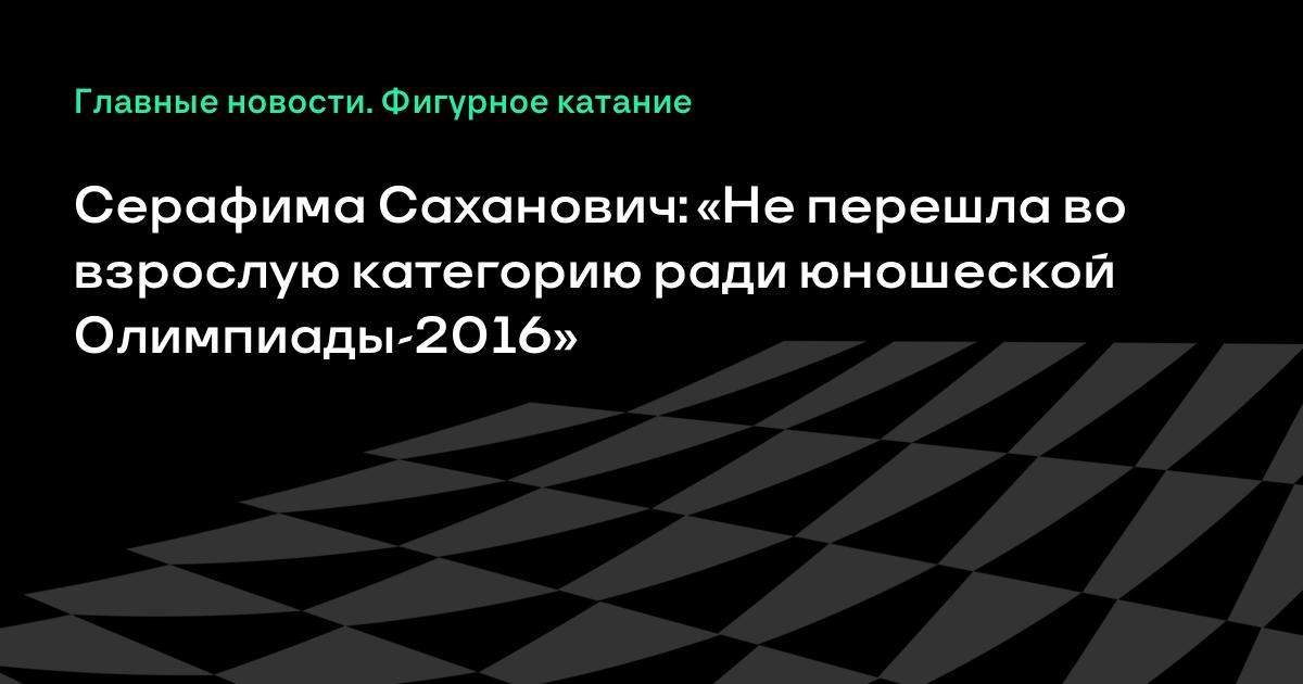 Серафима Саханович: «Не перешла во взрослую категорию ради юношеской Олимпиады-2016»