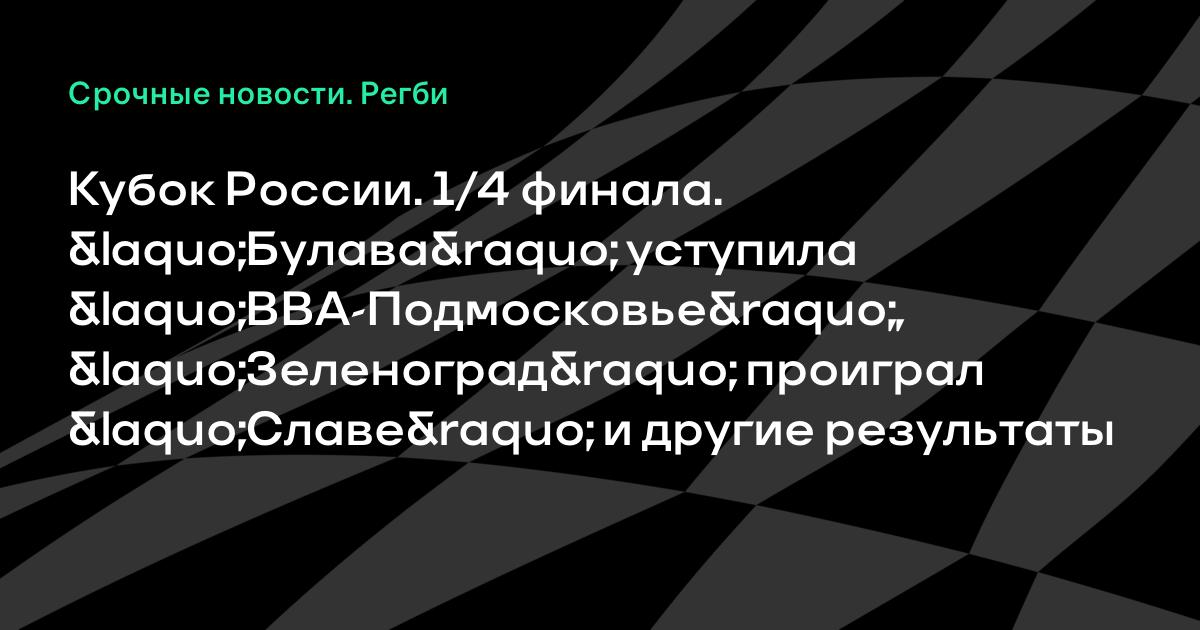Сегодня прошли два матча 1/4 финала Кубка России по регби. «Булава» уступила «ВВА-Подмосковье» (17:24), «Зеленоград» проиграл «Славе-ЦСП» (12:17).