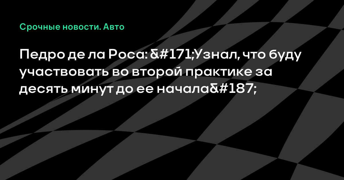 Тест-пилот «Макларена» Педро де ла Роса, который на Гран-при Канады выступит вместо пилота «Заубера» Серхио Переса, рассказал, что узнал о том, что примет участие во второй практике за швейцарскую конюшню лишь за десять минут до начала сессии. Кроме того, Педро пояснил, что ему необходимо привыкать к новой для себя машине.