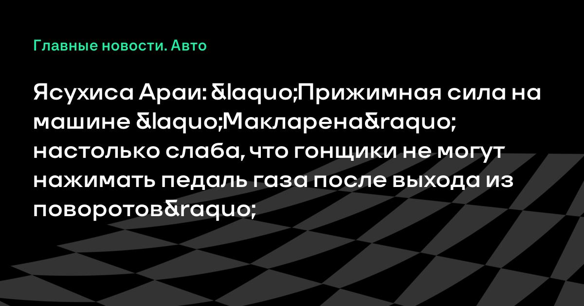 Ясухиса Араи: «Прижимная сила на машине «Макларена» настолько слаба, что гонщики не могут нажимать педаль газа после выхода из поворотов»