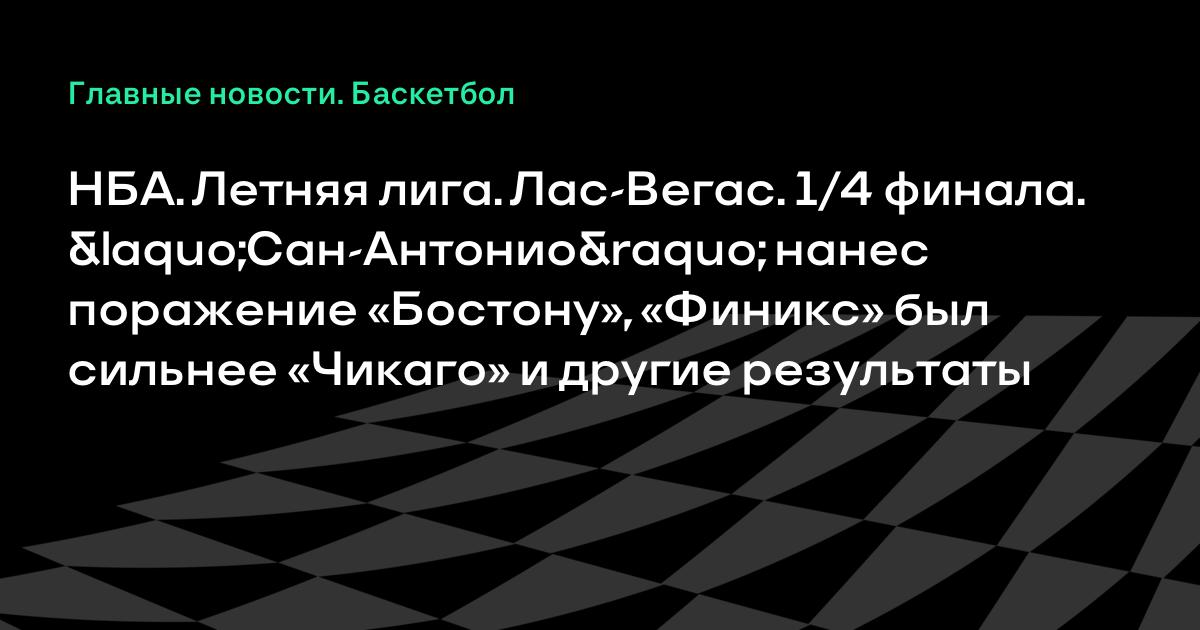 Сегодня в рамках четвертьфинальных матчей Летней лиги НБА в Лас-Вегасе «Сан-Антонио» нанес поражение «Бостону», «Финикс» был сильнее «Чикаго».