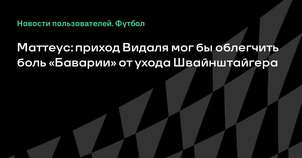 Бывший футболист «Баварии» Лотар Маттеус выразил мнение, что приход полузащитника «Ювентуса» Артуро Видаля мог бы облегчить боль мюнхенцев от перехода полузащитника Бастиана Швайнштайгера в «Манчестер Юнайтед».