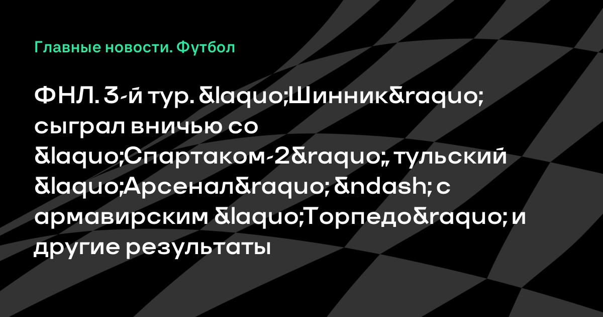 Сегодня в рамках 3-го тура первенства ФНЛ «Торпедо» из Армавира сыграло вничью с тульским «Арсеналом» (0:0), «Спартак-2» – с «Шинником» (0:0), а «Зенит-2» одолел «Тосно» (2:1).