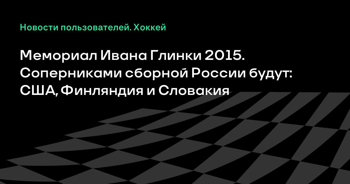 Мемориал Ивана Глинки 2015. Соперниками сборной России будут: США, Финляндия и Словакия