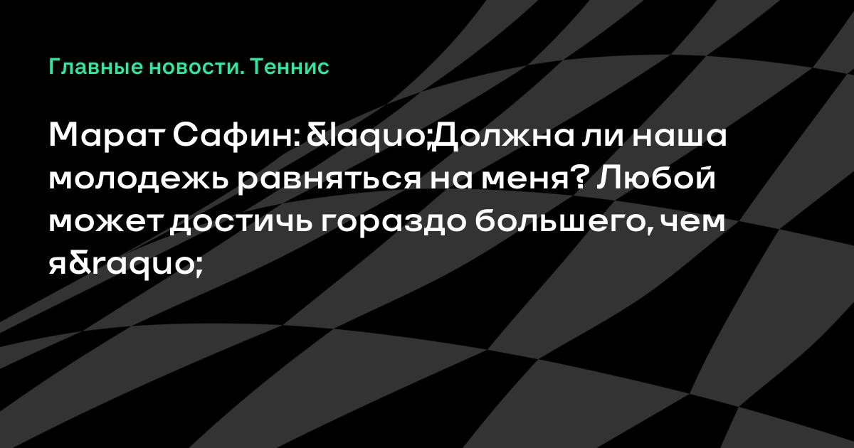Марат Сафин: «Должна ли наша молодежь равняться на меня? Любой может достичь гораздо большего, чем я»