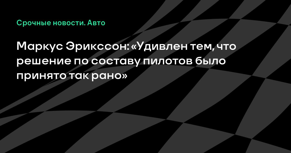 Маркус Эрикссон: «Удивлен тем, что решение по составу пилотов было принято так рано»