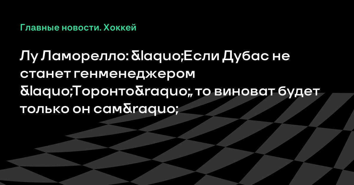 «Я знаю, чего достиг Дубас в прошлом. Если он не станет генменеджером «Мэйпл Лифс»... Я же здесь не навсегда, как вы понимаете. В общем, это может случится только по его вине», – считает Ламорелло.