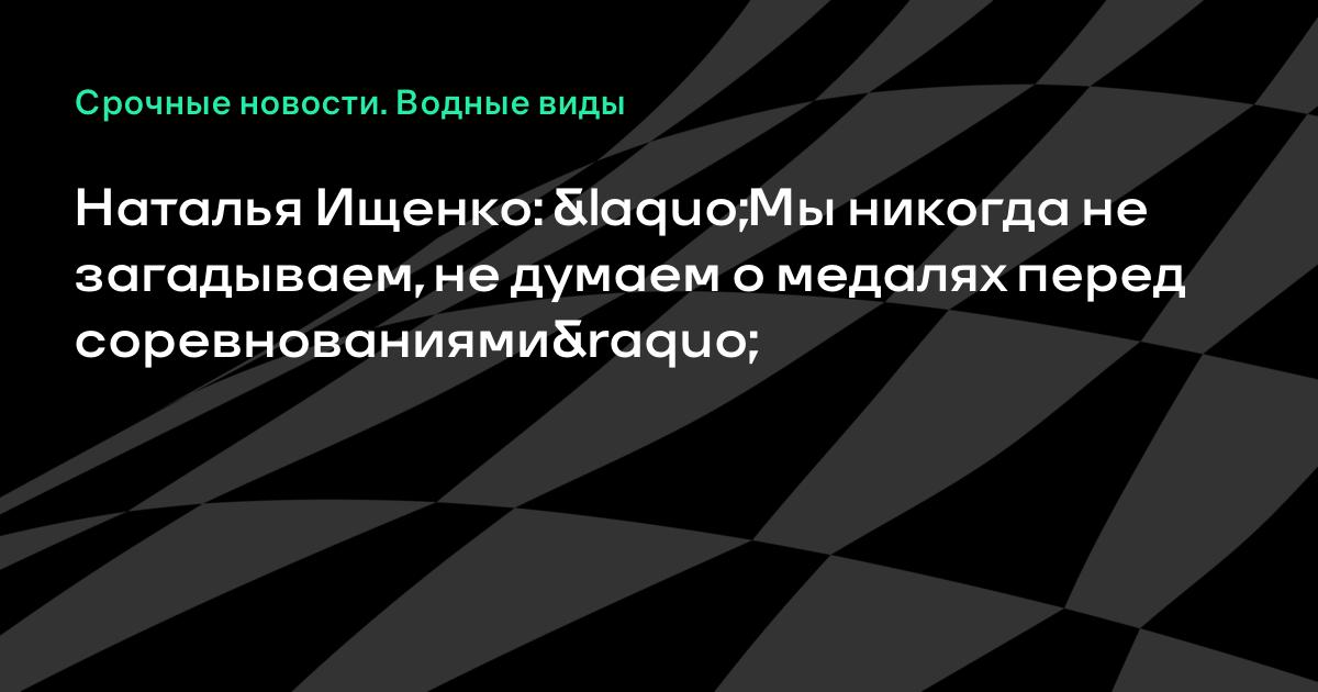 Российская синхронистка Наталья Ищенко сообщила, что не строит медальных планов на предстоящий чемпионат мира в Казани.