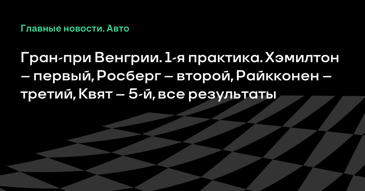 Гран-при Венгрии. 1-я практика. Хэмилтон – первый, Росберг – второй, Райкконен – третий, Квят – 5-й, все результаты