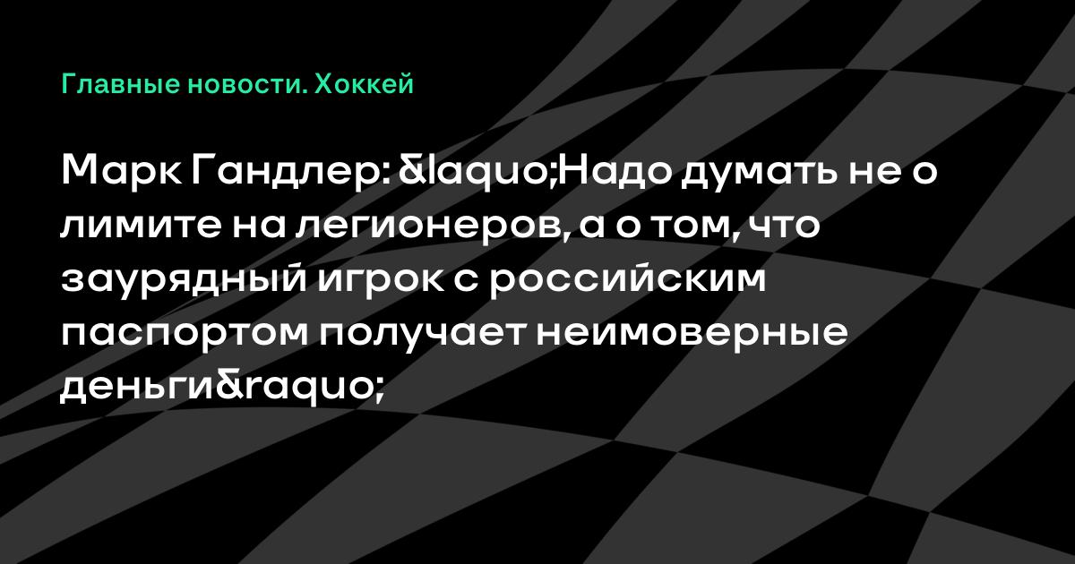Марк Гандлер: «Надо думать не о лимите на легионеров, а о том, что заурядный игрок с российским паспортом получает неимоверные деньги»
